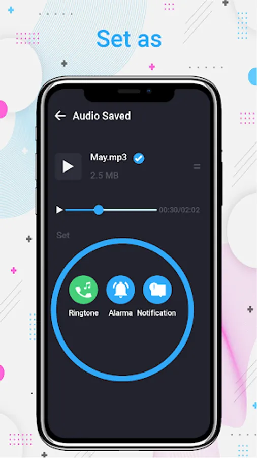 Then you can save it as a ringtone, alarm, notification, or a new song to listen to. also, You can share it.