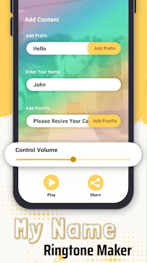 Make special and beautiful ringtones with given text or you may choose from default text. My Name Ringtone Maker is the best app for making name ringtone as your favorite caller tune.