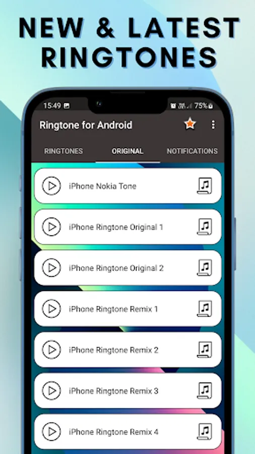 Download Ringtone for Android™ 2023 now and get the most latest popular Ringtone, or even best Remix Ringtone to your Android smartphones! You can download ringtones and set them as default ringtone, message ringtone, alarm ringtone or even contact ringtone.