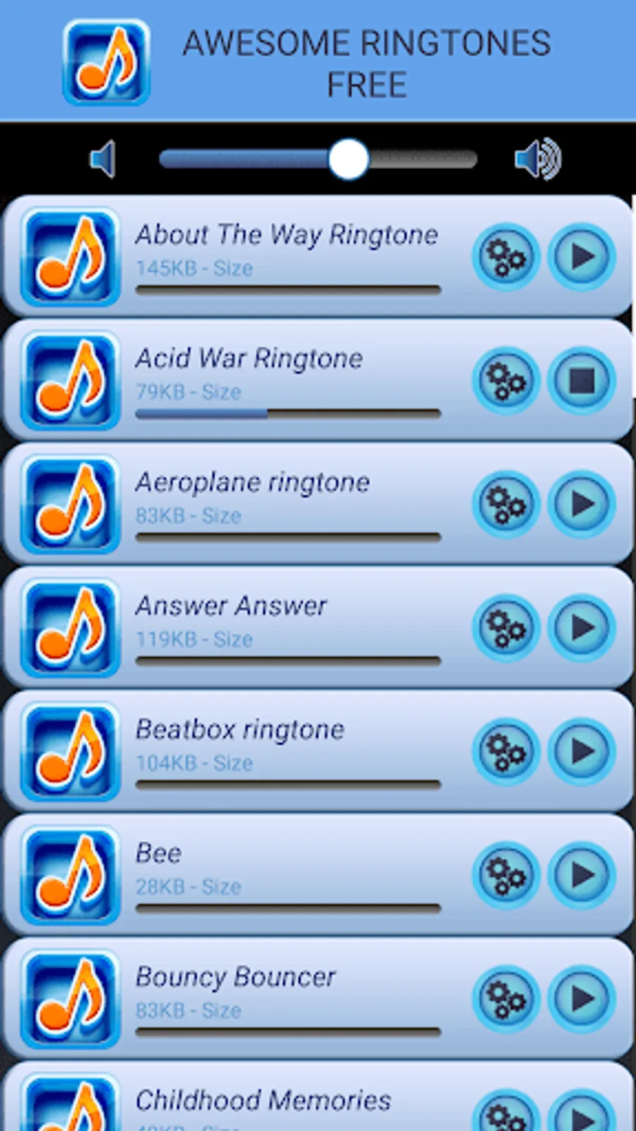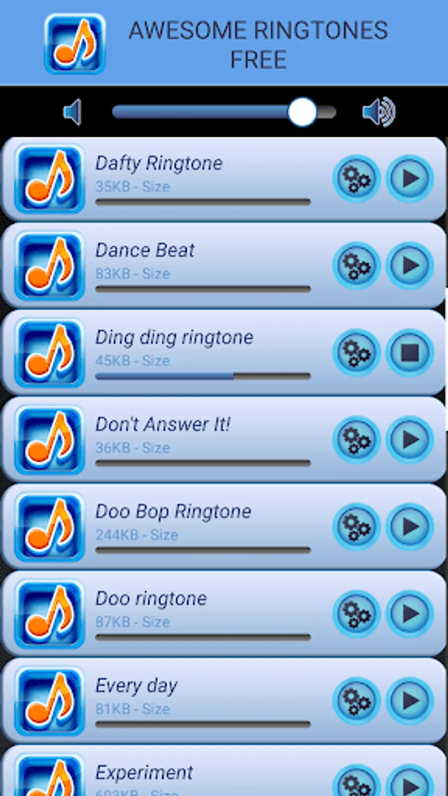 Awesome Ringtones Free Android app contains best selection of free carefully selected and top rated high quality sounds and melodies that can be used as ringtones, notifications, sms or alarm. Just one keyboard click and you will get the greatest romantic ringtones, text messages, top alarm sounds, cool notifications or alerts. These are the “top ringtones” at this very moment! Don't waste any second longer, install “free ringtones app” and you will not regret! Run this new soundboard and find best romantic sounds and soft melodies, like romantic piano, acoustic guitar, jazz love rhythm, whistle ringtones, dubstep rhythms, cool drums and many other awesome tones! Let your ringtone becomes more appealing and enrich your phone or tablet with our “top ringtone app”. Personalize the default ringtone, sound for a specific contact, the notification sound and the alarm sound.
