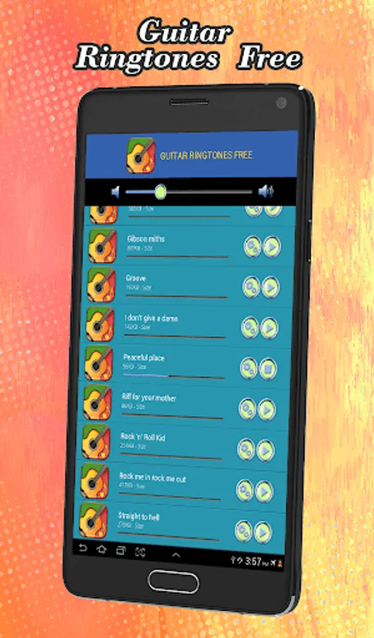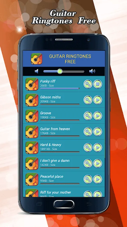 Do you need new and original ringtones for your Android™ phone and tablet! “Guitar Ringtones Free” is a collection of amazing “notification sounds and ringtones” completely free of charge! Have the best “rock music” or “guitar tunes” on your device! Use each and every of these “free rock ringtones” – set them as your alarm sound notification or assign them as a ringtone for a contact in your phone book! Enter the rock zone and change your default sounds to these “music ringtones free” of charge! If you are a devoted rock musician and you like to play the guitar, these “music ringtones free to download” are a great choice for you! Get this “ringtones app” and enjoy the best guitar sounds on your phone and tablet!