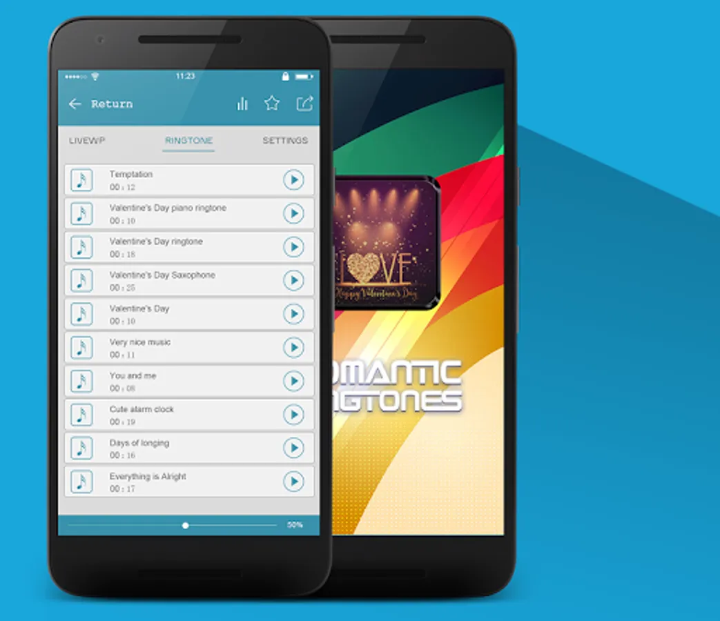 ● Select the best to listen to the romantic love ringtones, Valentine's Day music