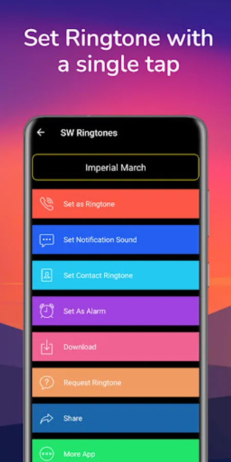 -Choose you favorite tone, click on the right corner setting button, set the tone as your new ringtone as easy in few steps!