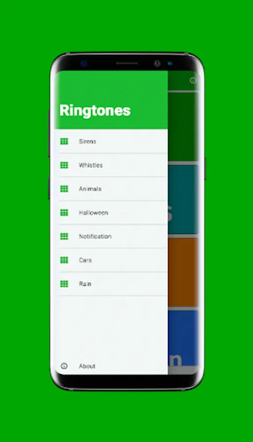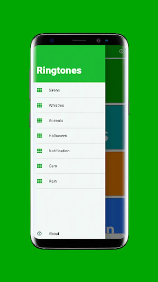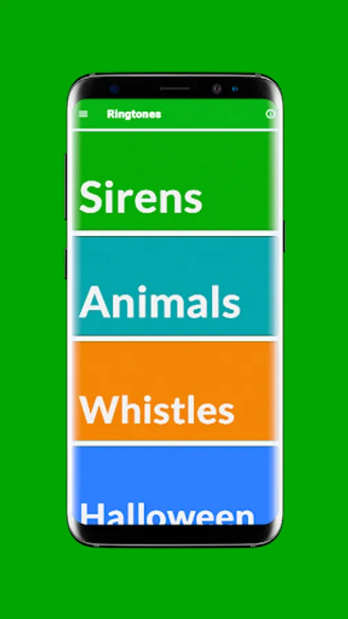 On the first screen of the application you will find the categories of the tones by colors, all of them are accessible just by clicking on them. Then within the category, for example animal tones, we can select one of the many sounds that appear. Once you have selected the tone that you like the most, you can play it and hit the bell in the upper right, where you can select it as a ringtone, message or alarm tone.