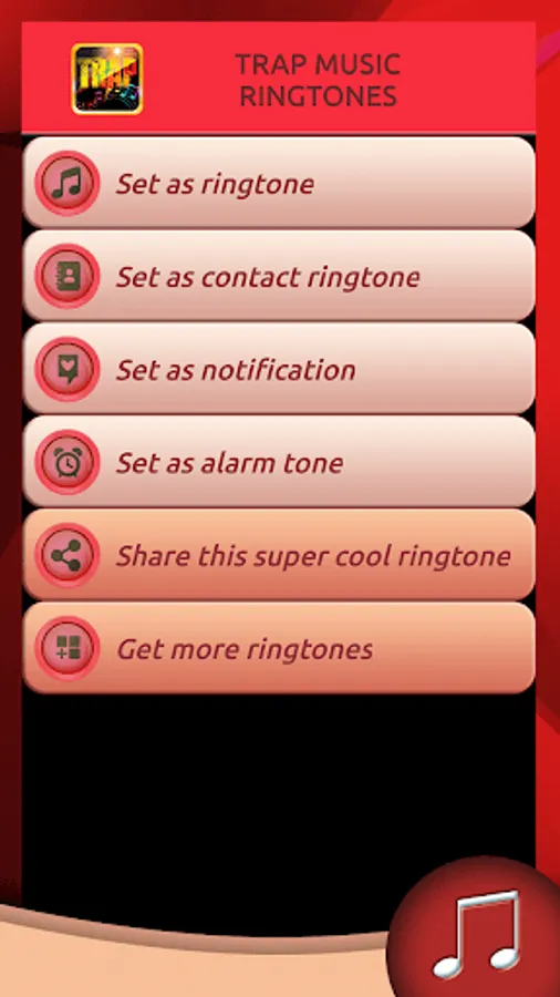 Turn to our app for the “top ringtones” and choose the most popular ringtone you like best. Trap Music Ringtones are the wonderful collection of amazing cool sms tones and melodies. This ring tone application includes huge selection of the top message tones and alarm sounds. You'll be able to set different ringtones for each of your friends by using short message ringtones. This exclusive ringtone soundboard is also great to set a different beep tone for your email or chat notification. DJ sound effects app adds a collection of cool DJ music, sound effects and ringtones for Android phone.