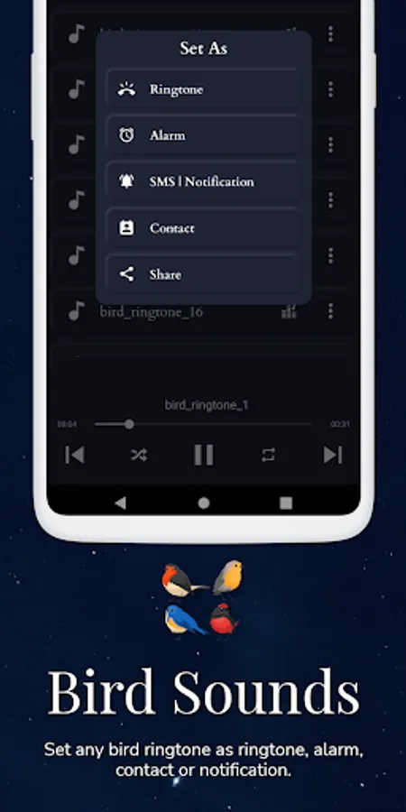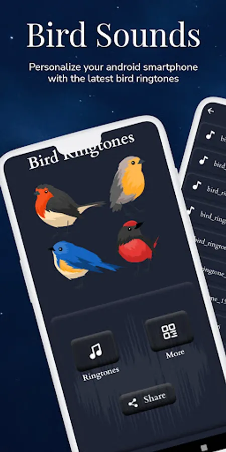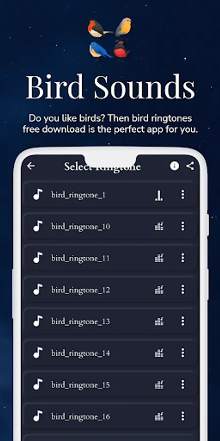Set any bird ringtone as ringtone, alarm, contact or notification. Just press any button and hear all the bird sounds we offer in this free app. Personalize your android smartphone with the latest bird ringtones.