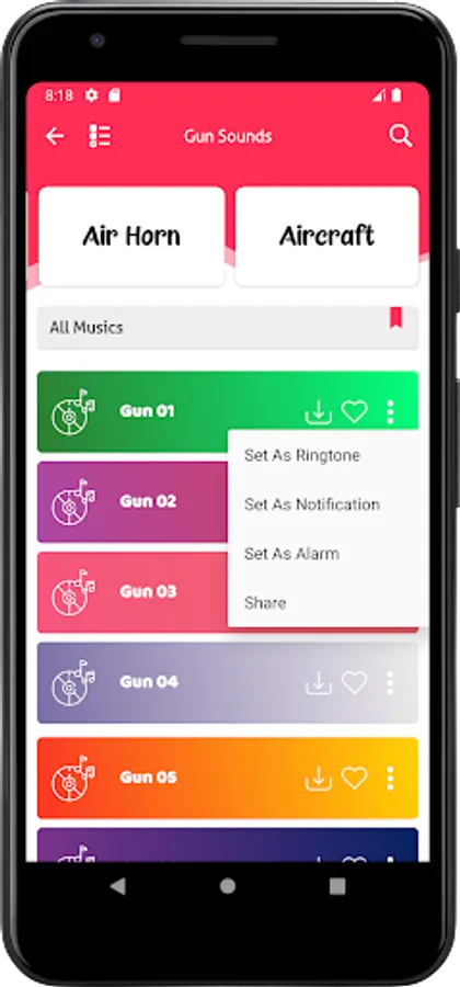 The Gun Sounds app features a massive, incredible, and high-quality collection of the world's most common and varied kinds of firearms and other types of weapons. Simply listen to the authentic sounds of the weapons. Every gun is authentic and produces its own distinct, natural sound. A number of the firearms in the collection were conceived while playing various shooting games. Choose your weapon of choice and start firing by clicking on the screen. You have a variety of guns to choose from.