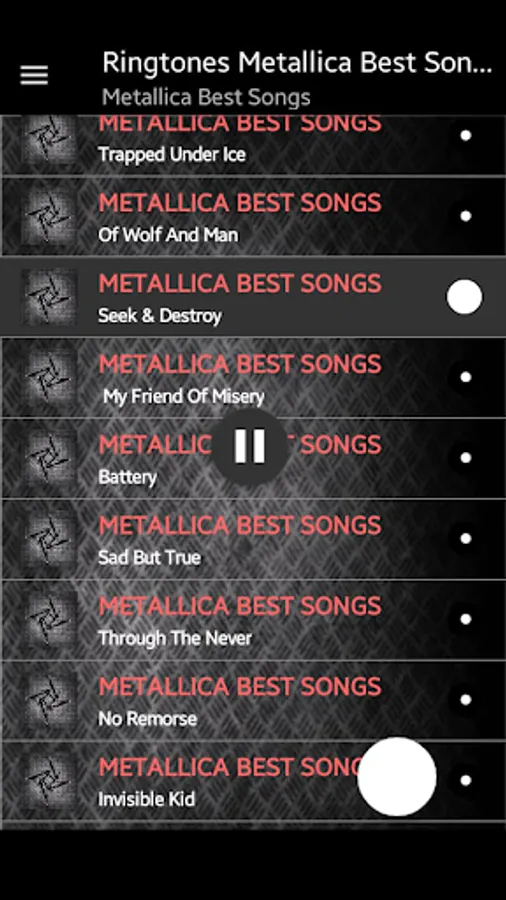 Our application will allow you to listen to playlists specially created for you, several songs of Metallica Best Songs and with a high quality sound.