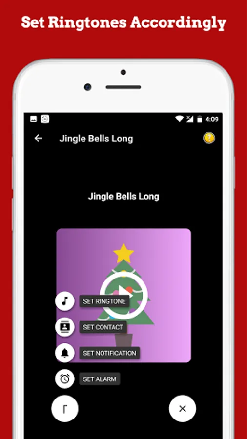 ☃️ Simply press each button to listen and preview the loud and clear ringtone. If you like it, press and hold the button. Then select either ringtone, alarm, notification, or contact.