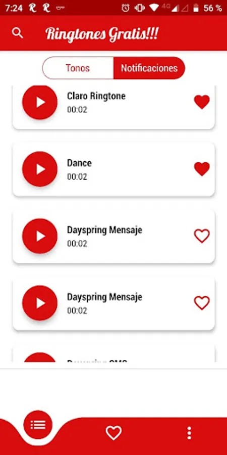 Save the ringtones you like the most in favorites to set them later as notification tone, alarm or ringtone.