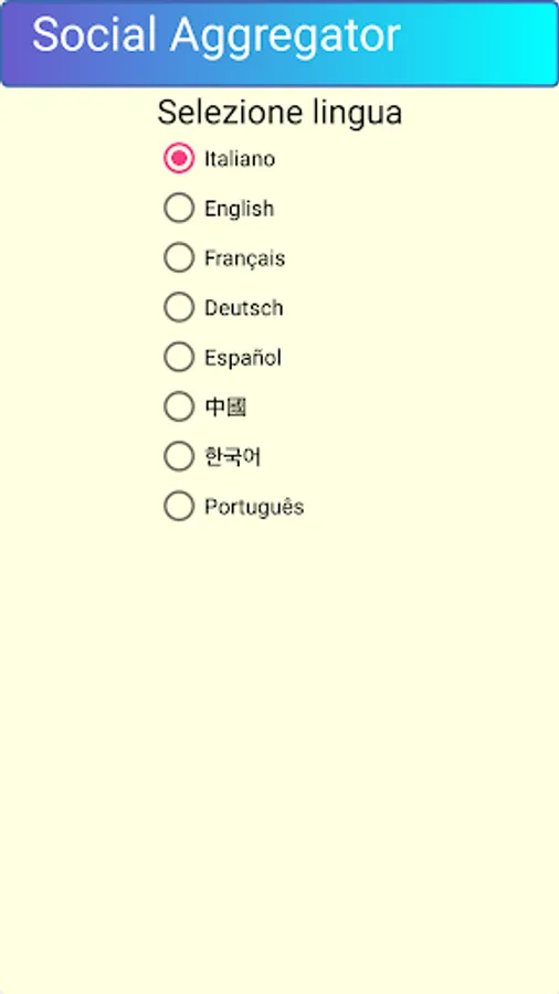 Social aggregator supports eight different languages: Italian, English, French, German, Simplified Chinese, Korean, Portuguese, Spanish.