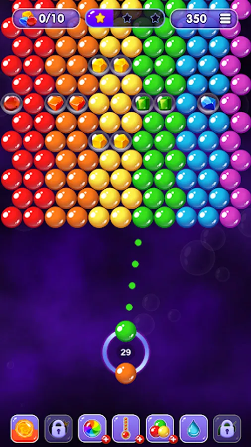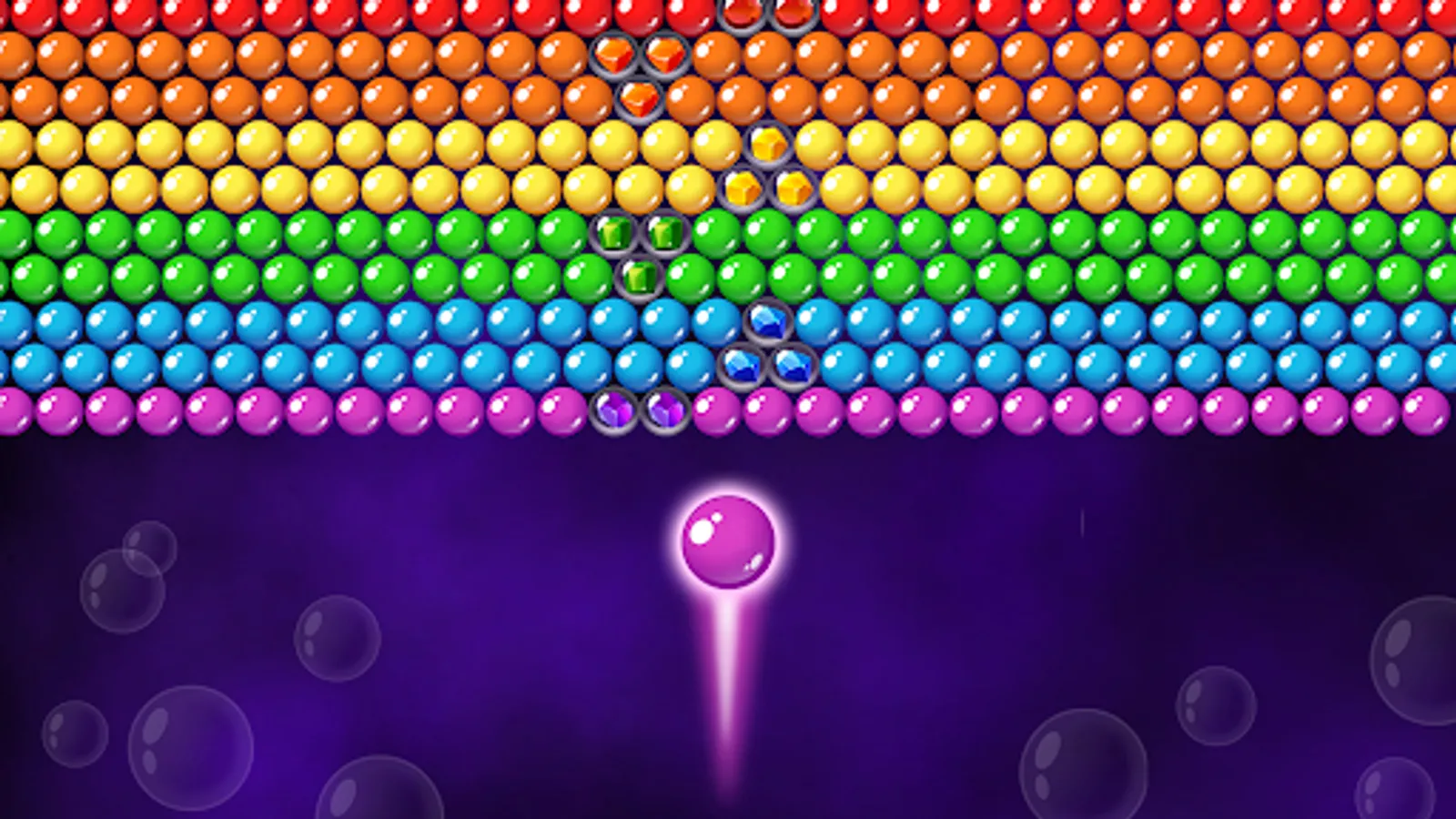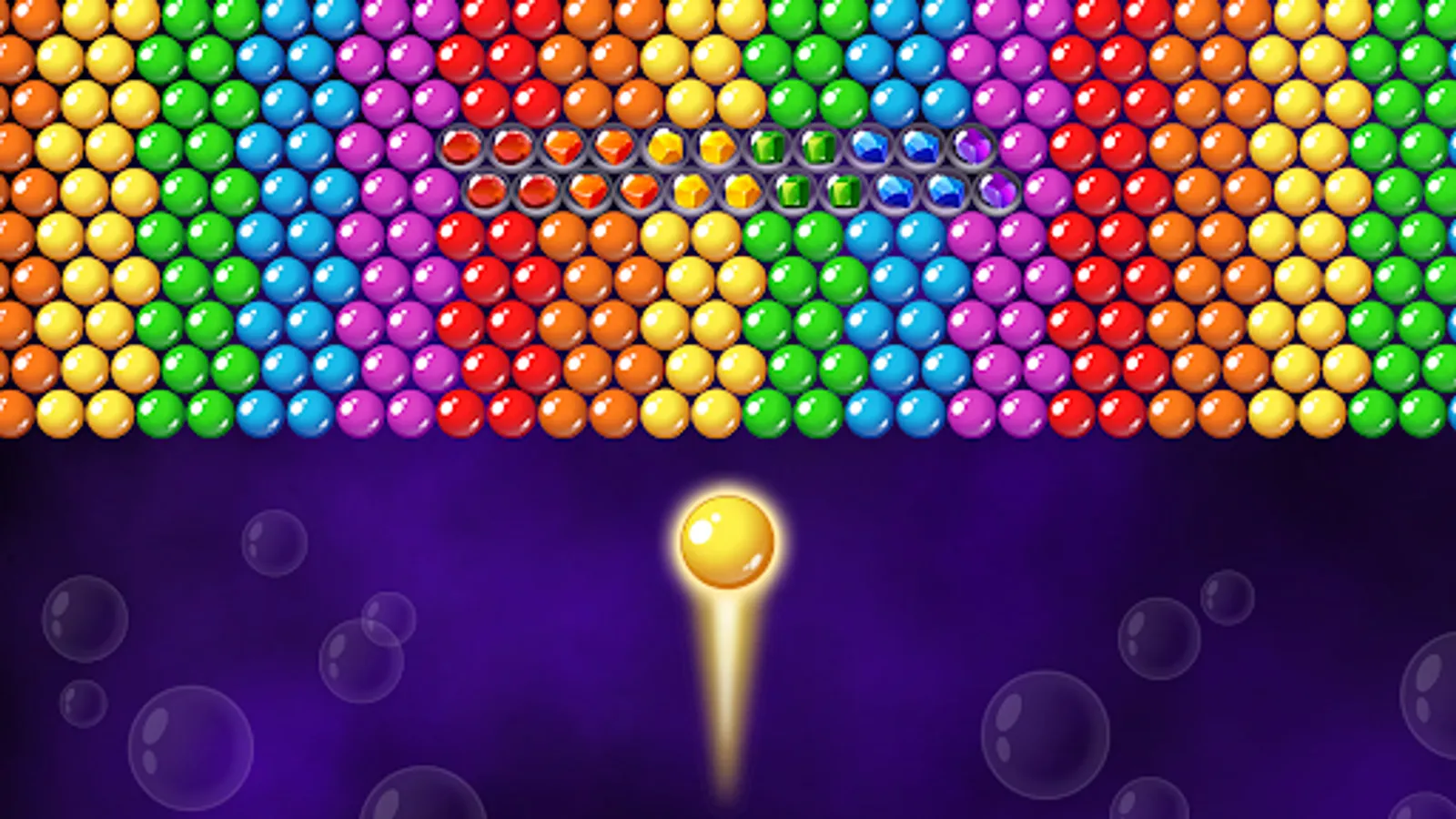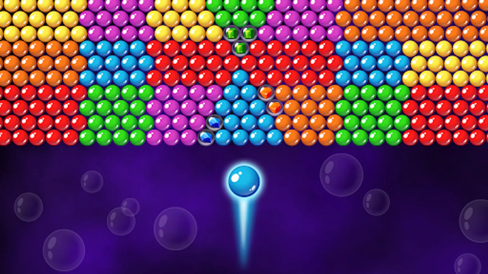 Clear the playing field and collect all the gems in colorful bubbles. Make groups of 3 or more bubbles of the same color and shoot at them.