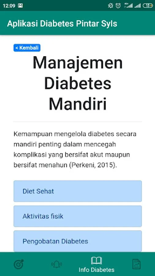 D-SyIs is a management application for diabetic patients that includes monthly examination recap, activities to maintain and prevent complications that are acute or chronic. There are several menus that can be used to change healthy lifestyles or maintain healthy lifestyles that have been implemented by these patients. Some of the menus are Healthy Diet, Physical Activity, Diabetes Treatment, Foot Care, Hypoglycemia Alert, Stress Management, and Routine Monitoring.