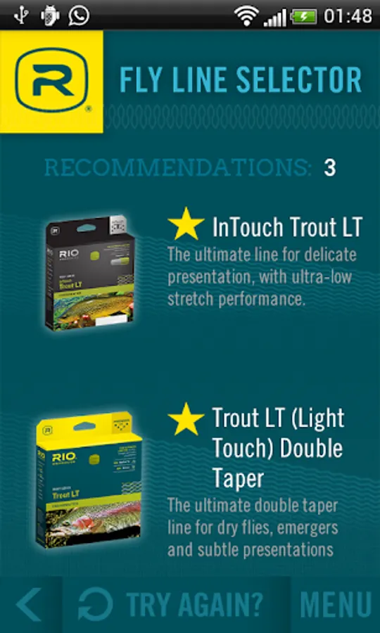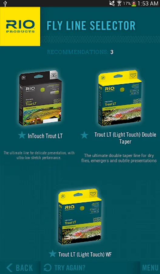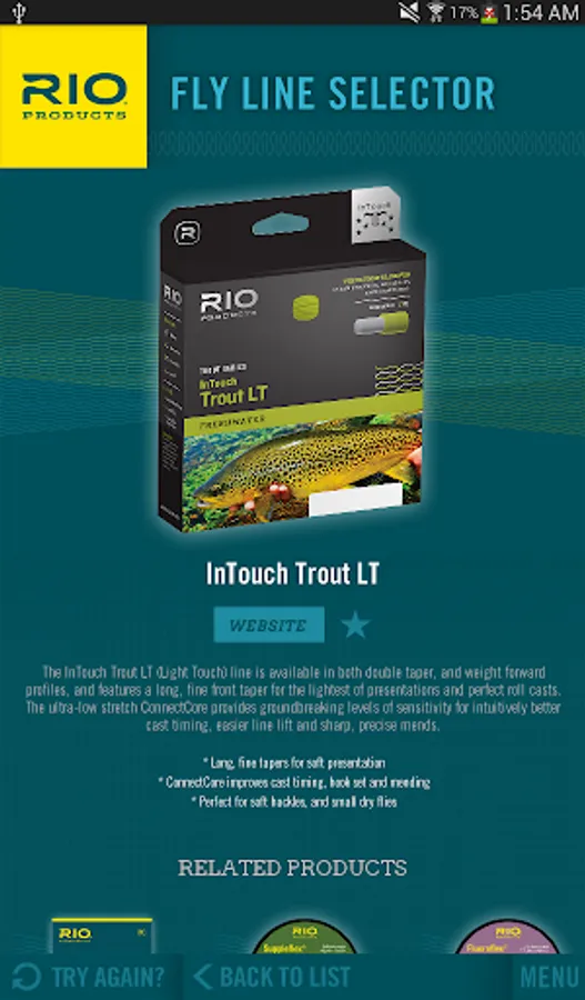 The RIO Line Selector is designed to help you find the right fly line for any fly fishing situation. It also helps match the right RIO fly line to hundreds of the most popular fly rods on the market. RIO. Make the Connection!