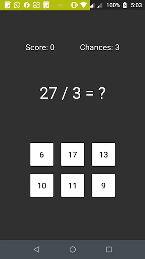 You can select either above operations or a mix of all operations as a game mode. After selecting a game mode, you will be getting simple arithmetic questions with si answers after getting into the play area.