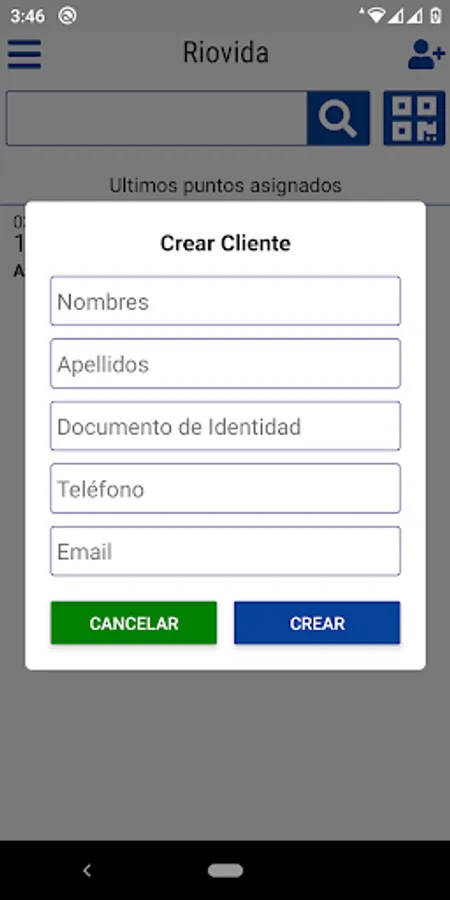 - Search for clients by name, identity document, telephone number or client code (QR)
