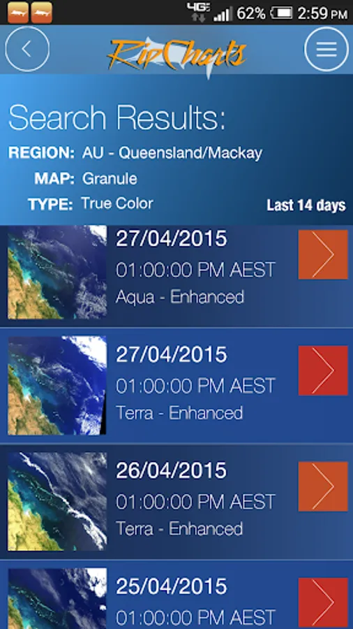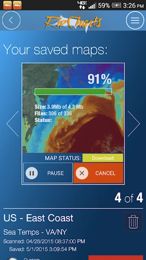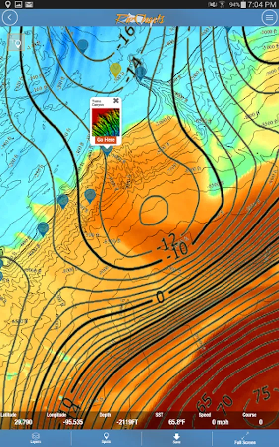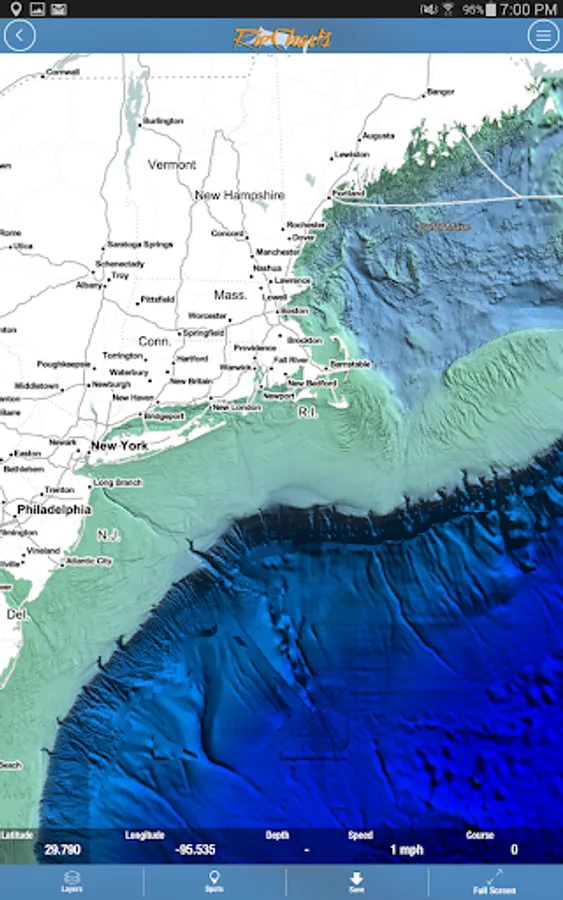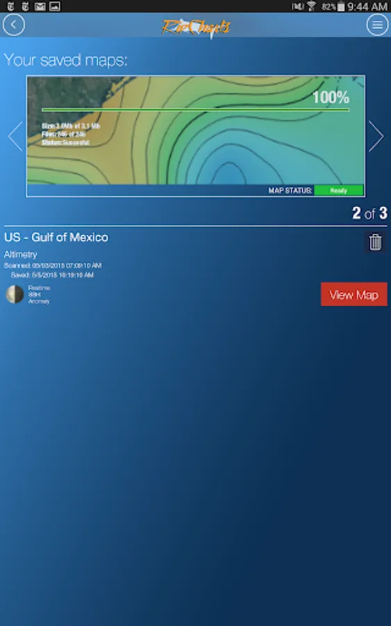 The RipCharts mobile app is a powerful tool that enables offshore fishermen to evaluate recent satellite imagery in order to determine favorable fishing conditions. Search for, view, and download maps of near-realtime satellite imagery onto your device to take with you offshore.