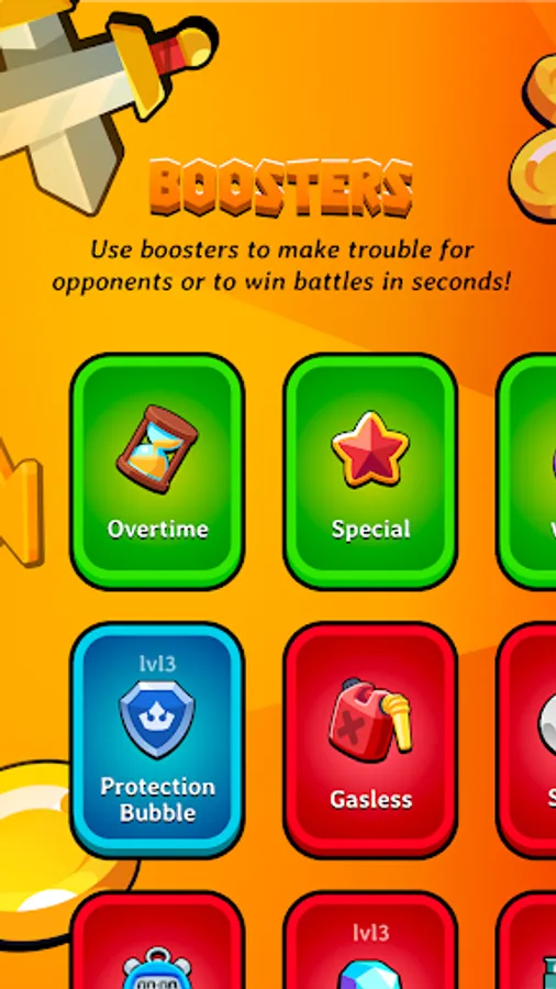 You will not go into each game empty handed, you will have a wide variety of exciting BOOSTERS to choose from in this PvP English quiz game.