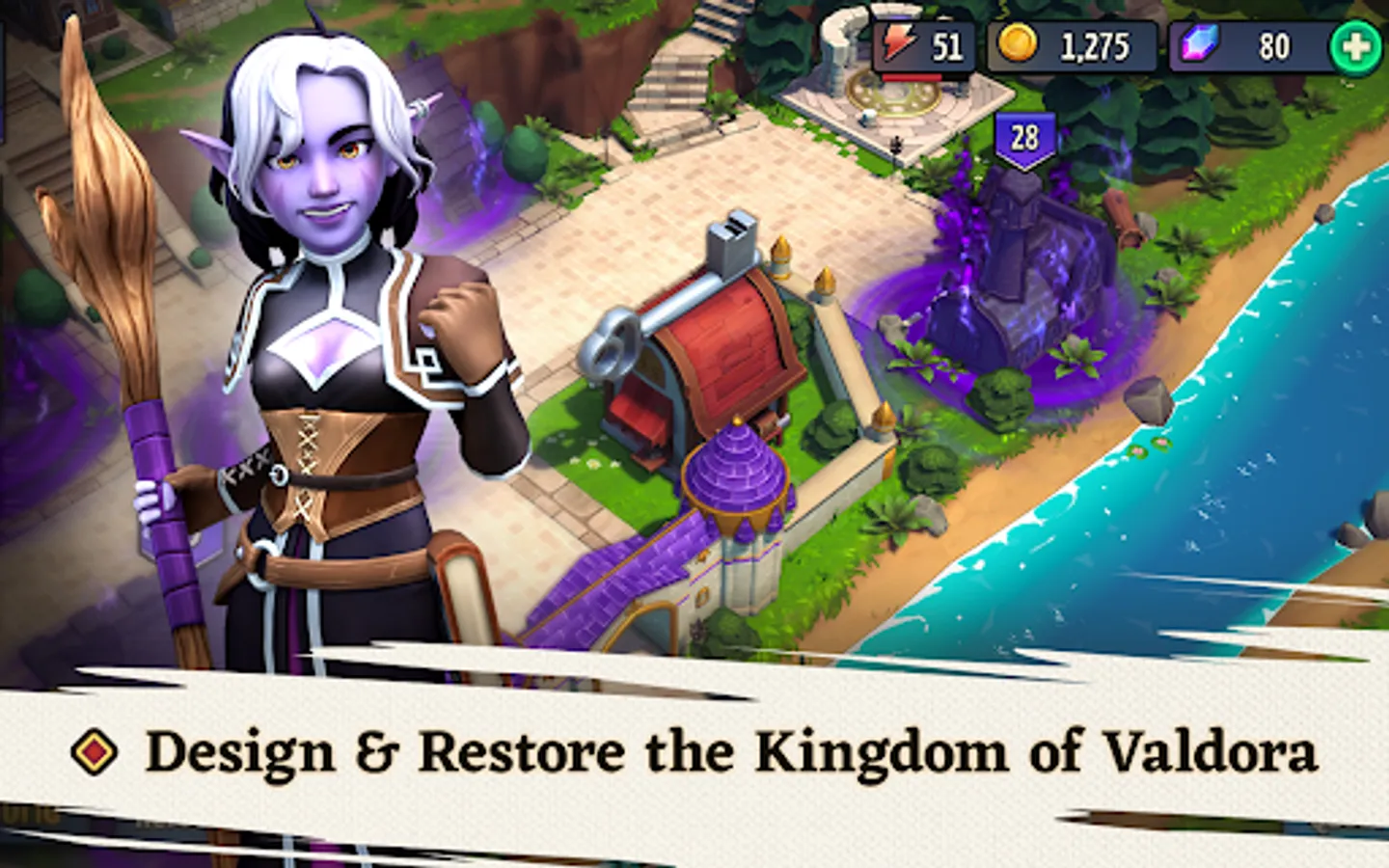 Collect resources strategically to design, build and continually advance your town. Equip your heroes with deadly attack power in battles against mythical creatures. Join a guild and be a part of a thriving cooperative community. Every battle won earns you loot and resources where you can employ them in the revival of your town.