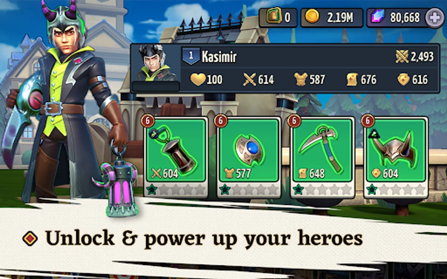 Collect and customize the heroes of Valdora for battle, and level them up with skills, powers, weapons and items.