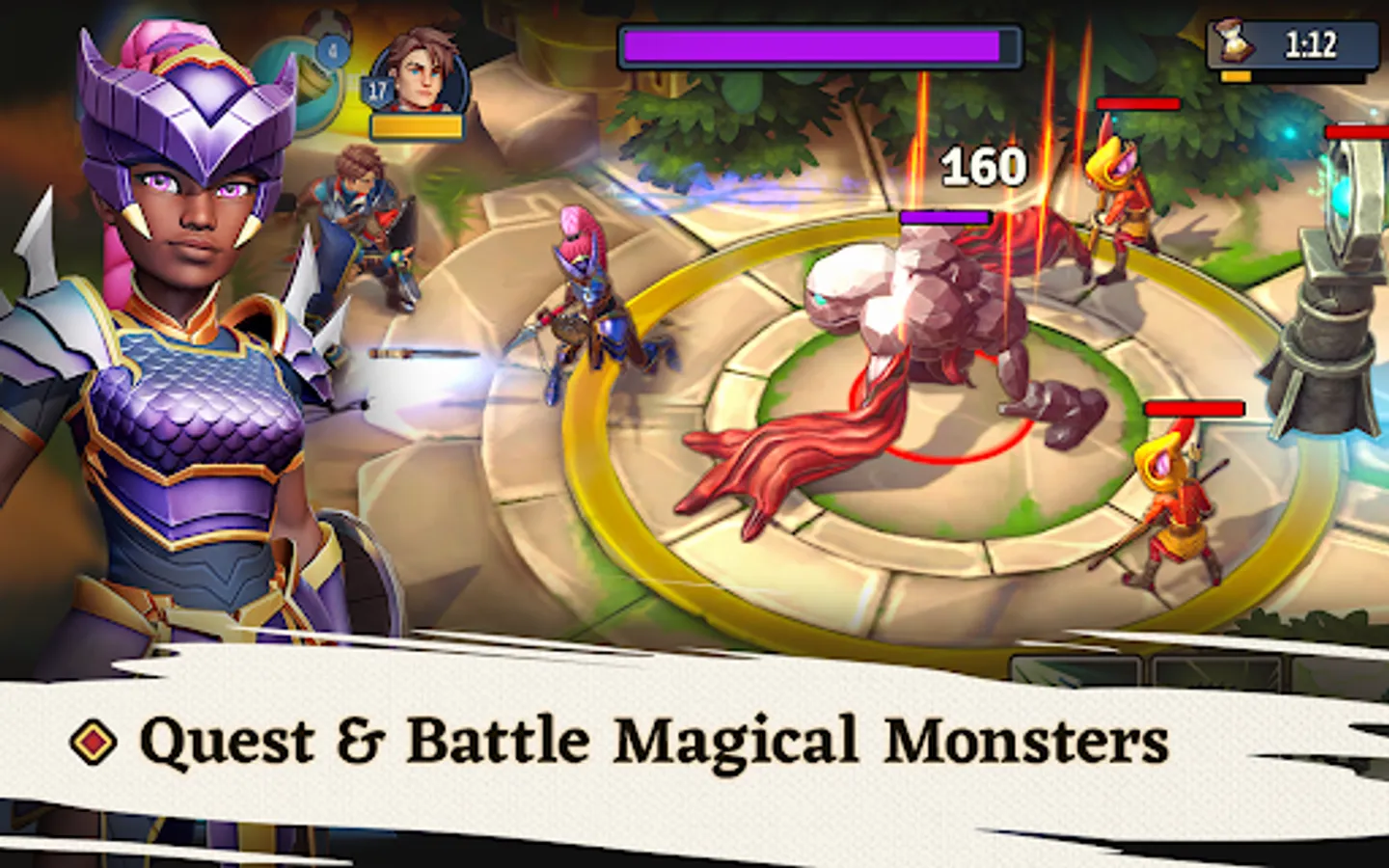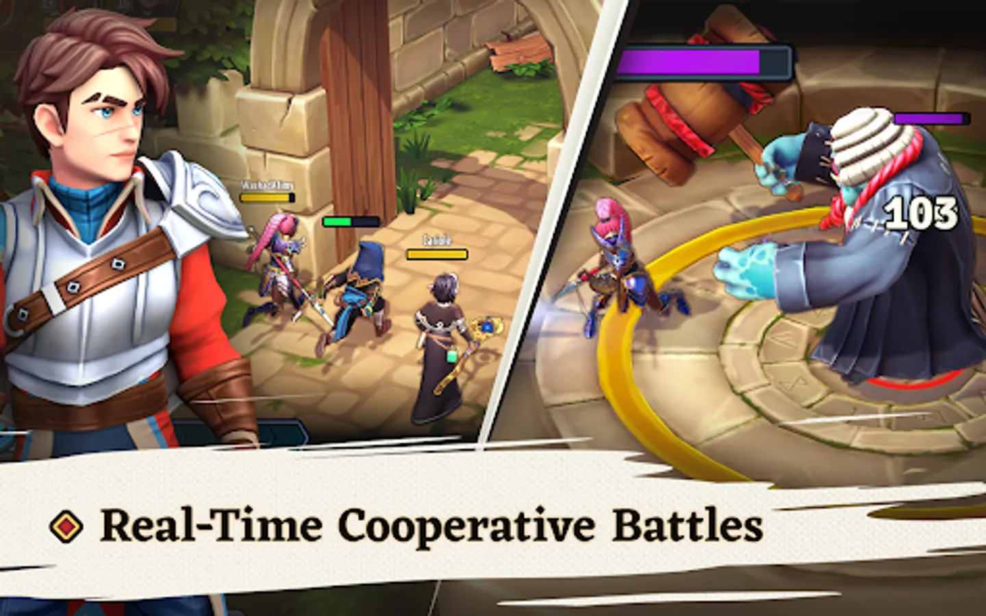 Connect with others, battle with friends, call for support mid-battle and join a guild to help increase your rank.