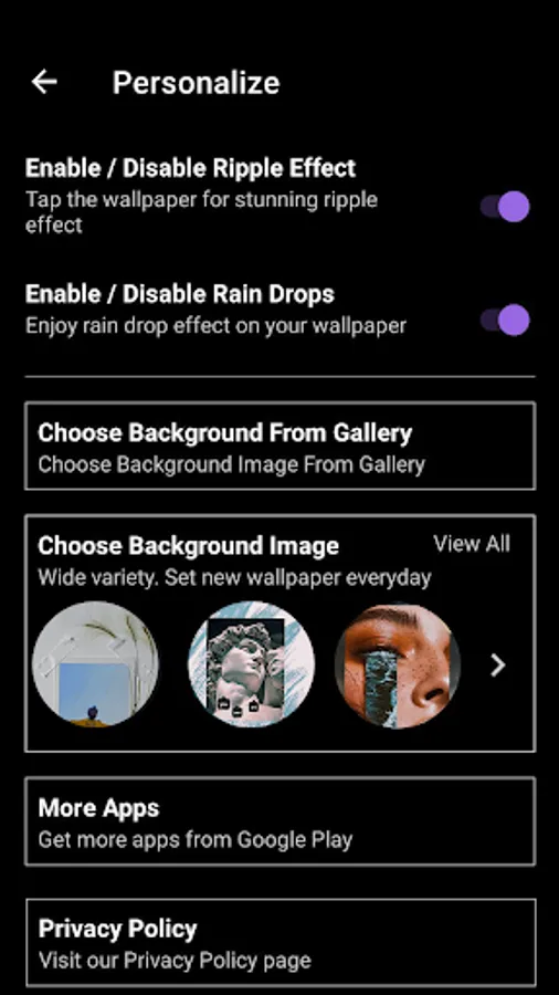 This application can help your device with your style. Check out our new APP! It's easy to use and cool! With touching of screen you can make ripple effect. You can relax with it. This application can make your screen phone more beautifull and original. Decorate your screen with HD wallpaper and some beautifull water ripples effect. It's free, lightweight and don't need a lot of battery. Grab it and use some abstract, kawaii or just great wallpaper. Also don`t forget that you can choose your personal images to put on screen and use cool ripple effect with your photos!