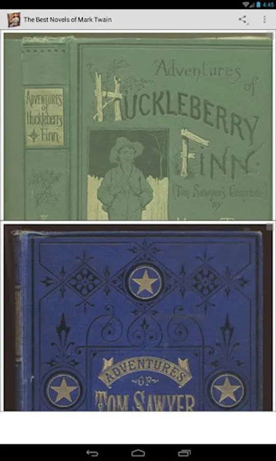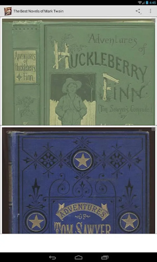 An adventurer and wily intellectual, Mark Twain wrote the classic American novels The Adventures of Tom Sawyer and Adventures of Huckleberry Finn. Twain began to gain fame when his story, "The Celebrated Jumping Frog of Calavaras County" appeared in the New York Saturday Press on November 18, 1865. Twain's first book, "The Innocents Abroad," was published in 1869, "The Adventures of Tom Sawyer" in 1876, and "The Adventures of Huckleberry Finn" in 1885. He wrote 28 books and numerous short stories, letters and sketches. The lists below can be found on this app that give some the main works, but omit many of the pieces printed in journals and a lot of the short papers.