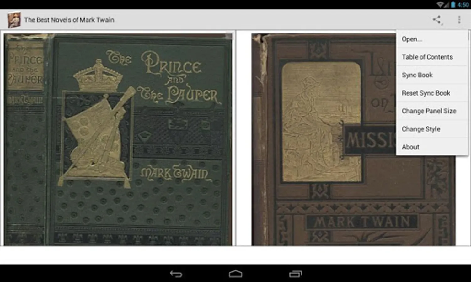 The books reader allows the user to split the viewport, creating two separate viewing areas, mimicking the familiar interaction with paper books, where, at the same time, multiple passages from the same book, and passages from different books.