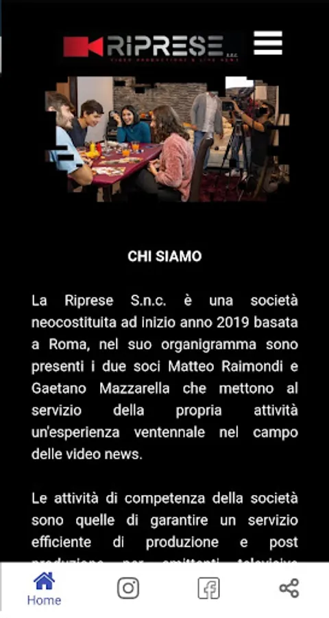 La Riprese S.n.c. is a newly established company at the beginning of 2019 based in Rome, in its organization chart there are the two partners Matteo Raimondi and Gaetano Mazzarella who put twenty years of experience in the field of video news at the service of their business.