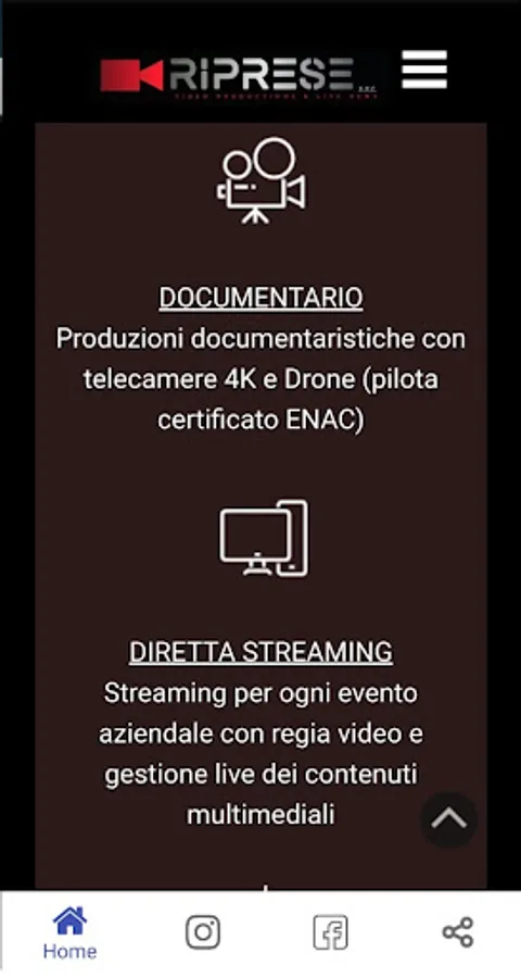 Initiative has always been a strong point and has allowed the achievement of professional growth and development objectives for audiovisual projects, at the service of Customers, by means of human resources and cutting-edge technologies of which the company Riprese S.n.c. disposes.