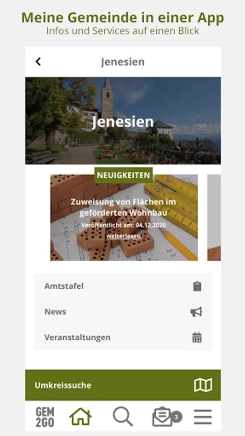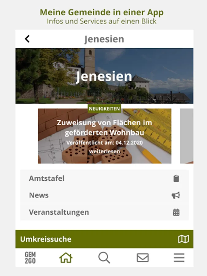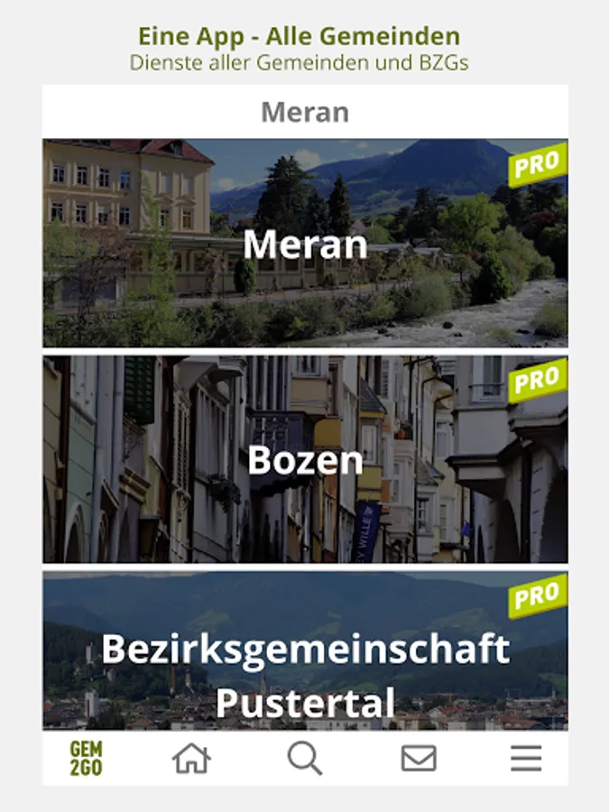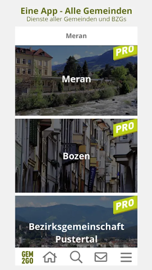 The Gem2Go South Tyrol app offers up-to-date, compact and mobile access to information and services from all municipalities and district communities in South Tyrol.