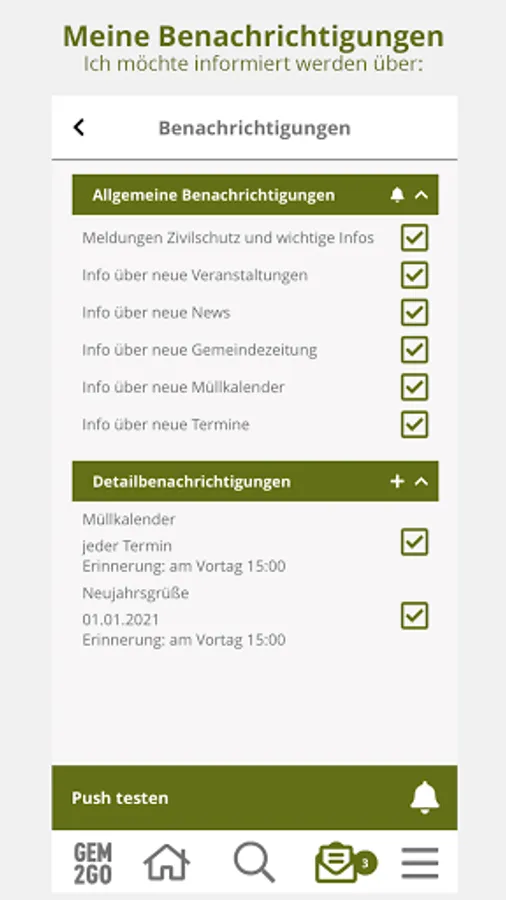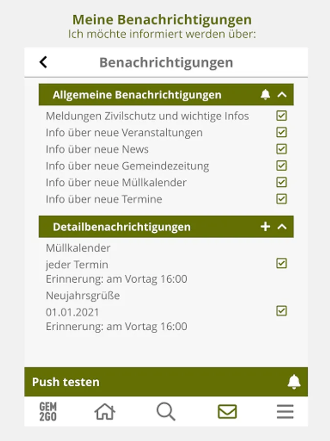 Always be informed about the current dates, events and news, as well as community and state civil protection notifications in real time as a push notification on the device - that's Gem2Go.