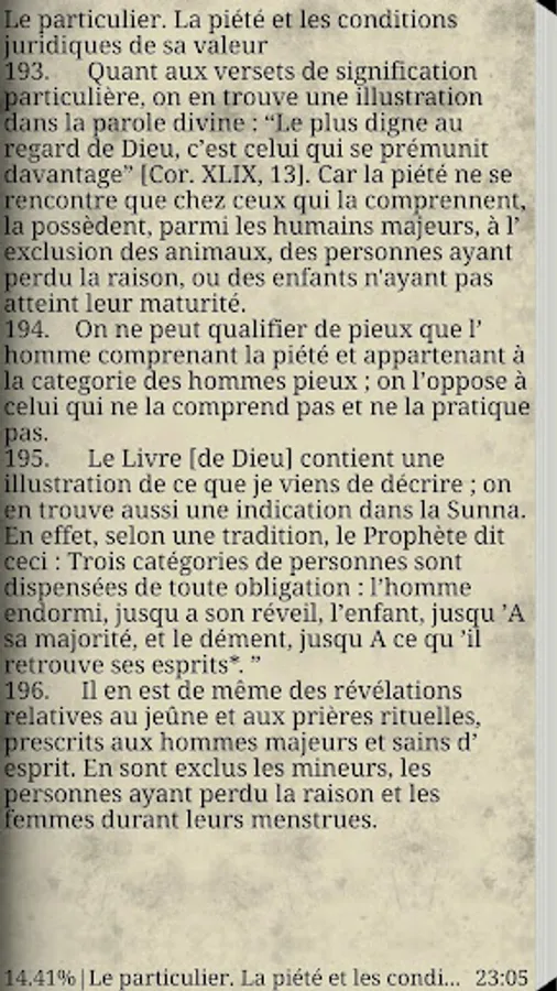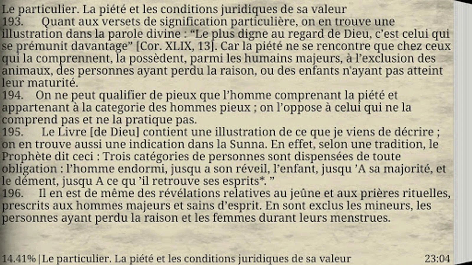 The Imam al-Châfi`î deals with various topics in this book; he develops the rules and methods of inference and interpretation; it is explicit evidence of its legal opinions and methodology he applied to take the judgments of the Qur'an and Sunnah; it provides explanations of his research on the hadith and Athar (traditions of the Companions) and the method that enabled him to ensure their authenticity.