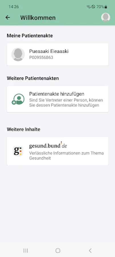 • Use of the patient file to register in the e-prescription app (The e-prescription for Germany).