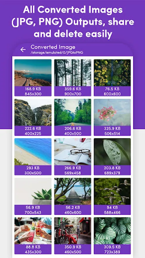 - All Converted Images (JPG, PNG) Outputs, share and delete easily