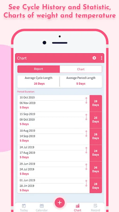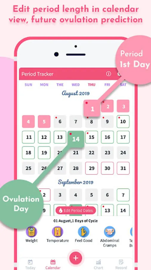 - It tracks your periods, cycles, ovulation and the chance of conception