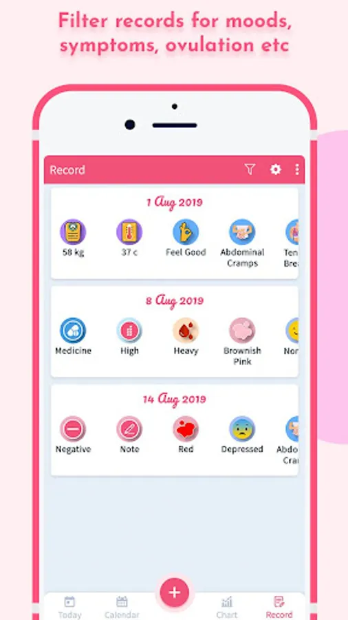 App is very useful, when you have irregular periods or regular periods or predict your period. It can track your chance of pregnancy every day.