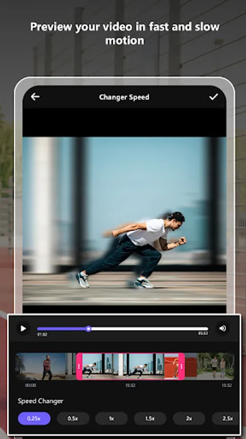 Preview your video in fast and slow motion and save your creations without losing video quality.