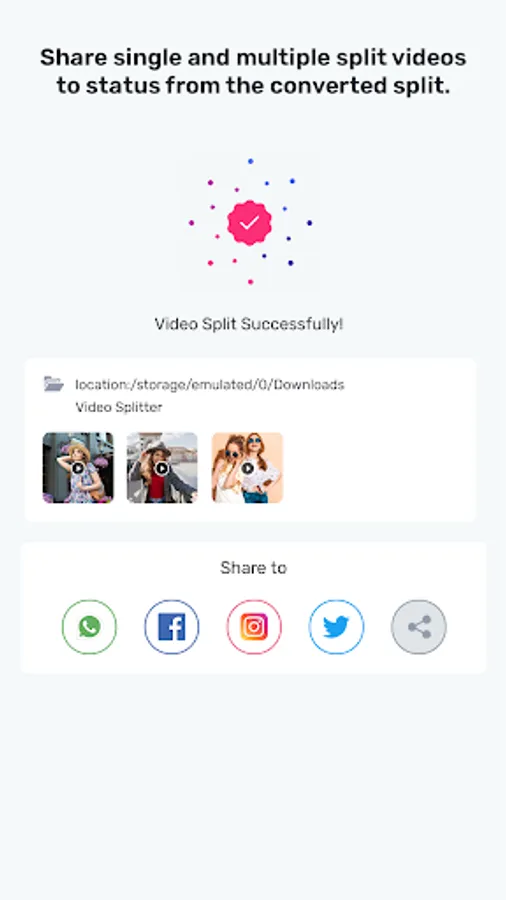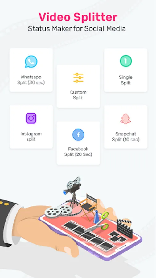 Use single app for all social media platforms, Slice video with define custom duration. Cut videos easily & quickly.
