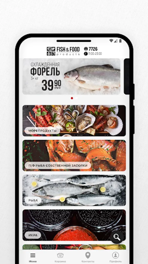 The FISH&FOOD mobile application is a quick and convenient way to order fish or seafood with delivery throughout Belarus. The most exquisite selection of seafood delicacies, only the freshest and most exclusive products.