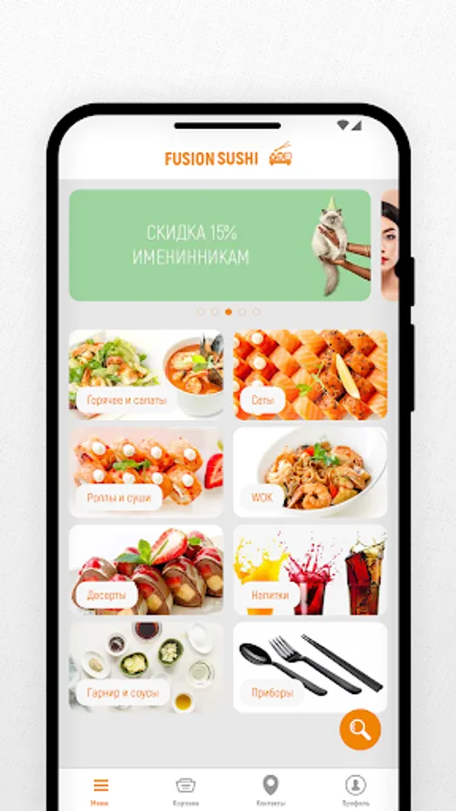 The FUSION SUSHI mobile application is a diverse selection of sushi and other Japanese dishes, from classic dishes to original author's rolls. Creative approach, exotic combinations of ingredients, bright and unique flavor combinations.