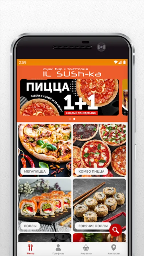 Menu, novelties, promotions and special offers for the users of the application from the IL Sush-ka sushi bar