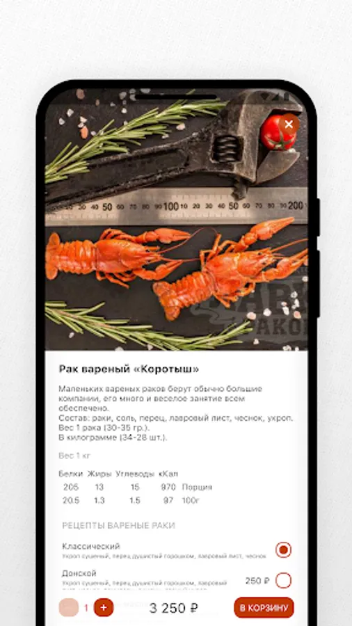 Crayfish Shop mobile application - a delivery service for boiled and live crayfish, seafood dishes: mussels, shrimps, langoustines, fish. Open kitchen, dishes are prepared only on order, our own delivery service. Delivery area - Moscow and Moscow region. You can also pick up the order by self-delivery at the address: Moscow, st. Shmitovsky proezd, 16s1. There is a cumulative system of discounts. Stock. Bonuses.