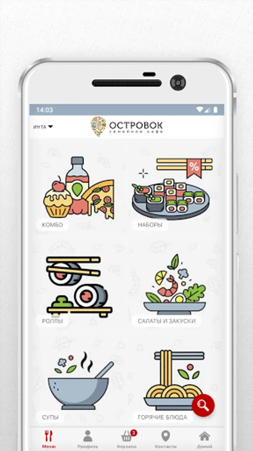 The Ostrovok cafe mobile application is a quick way to order delicious food in the Ostrovok cafe.
