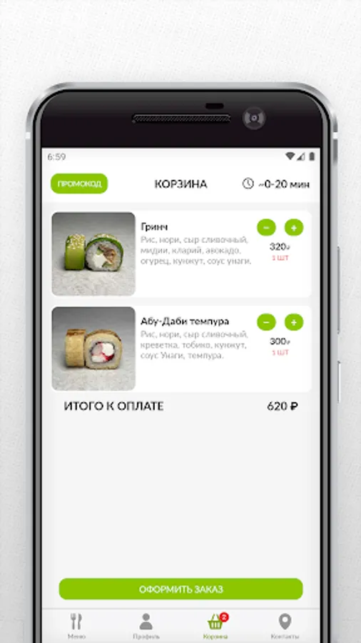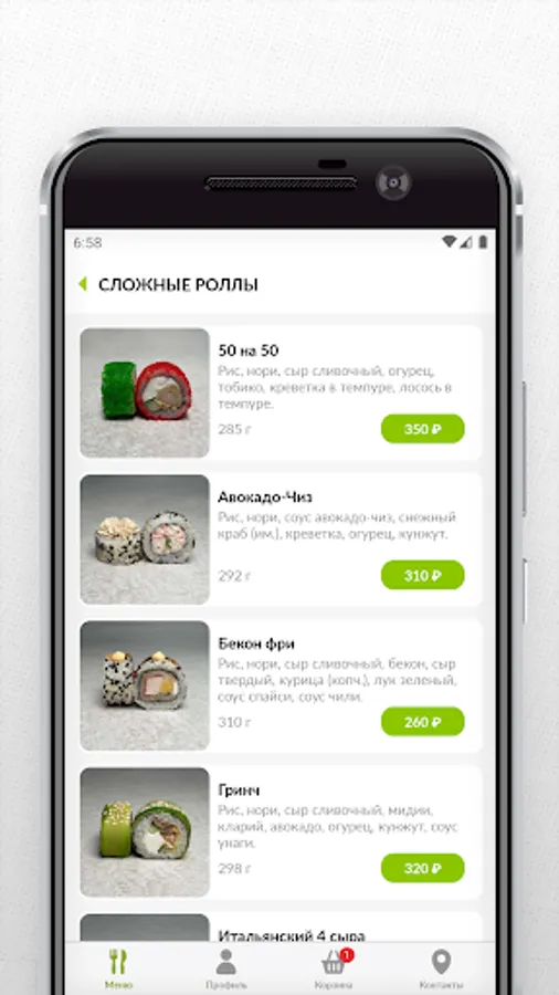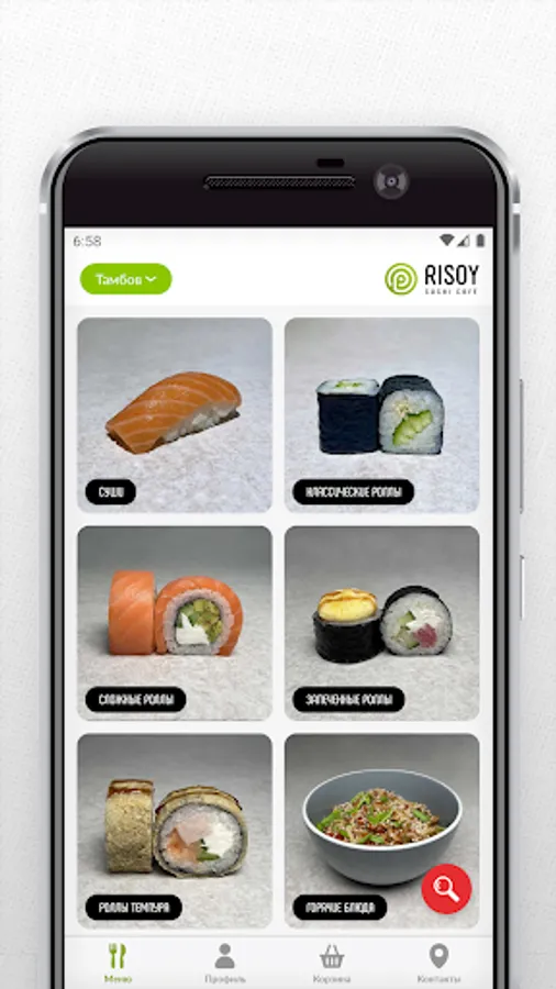 Mobile application sushi cafe RISOY - delivery of sushi, rolls and WOK. Now you can place your order even faster!