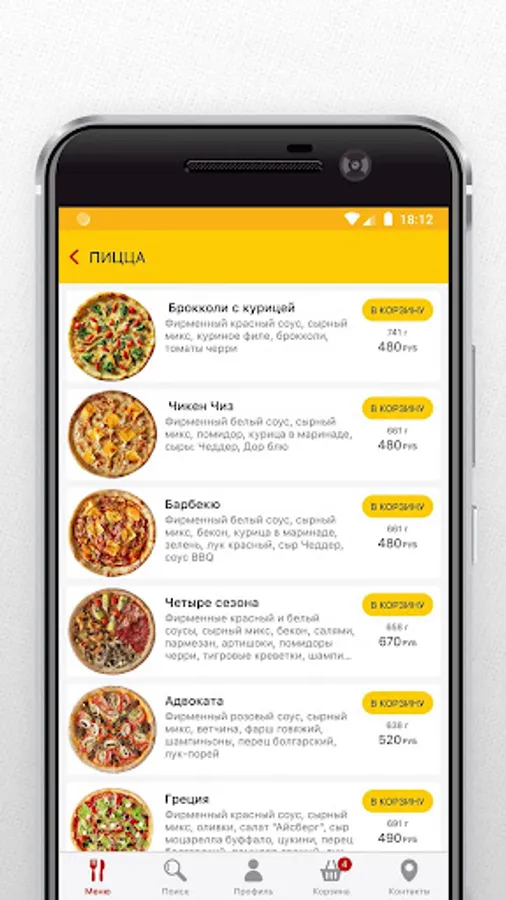 We focus on the quality of our ingredients, we work only with trusted suppliers. Our pizza dough is only fresh, no frost. Our fruit drinks are without preservatives, on natural berries. We prepare our soups according to the best recipes. Any pizza with us is a rich variety of ingredients, carefully verified for an unusually harmonious taste.
