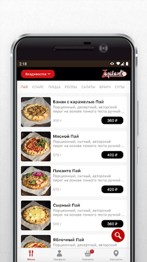 A mobile application from the Zapikanto company is a network of author's pizzerias, which combines the harmony of tastes of baked spicy food and fragrant coffee.