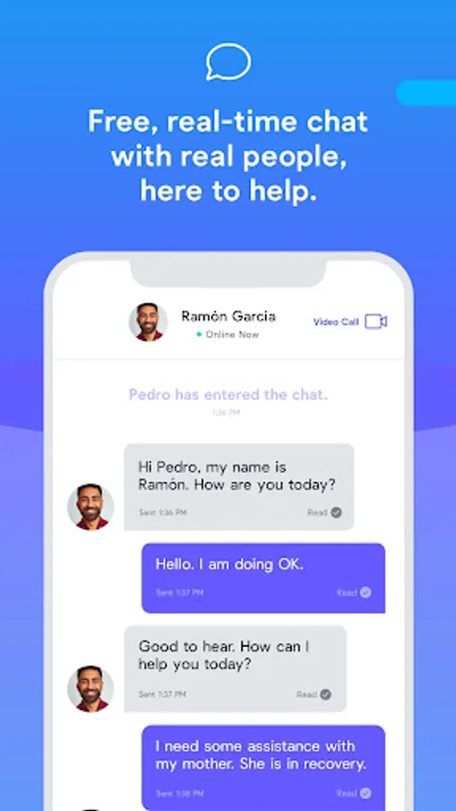 With one click, you can chat or video call with our team all while staying anonymous – totally free. Our team is standing by in real-time to help you however you need it.