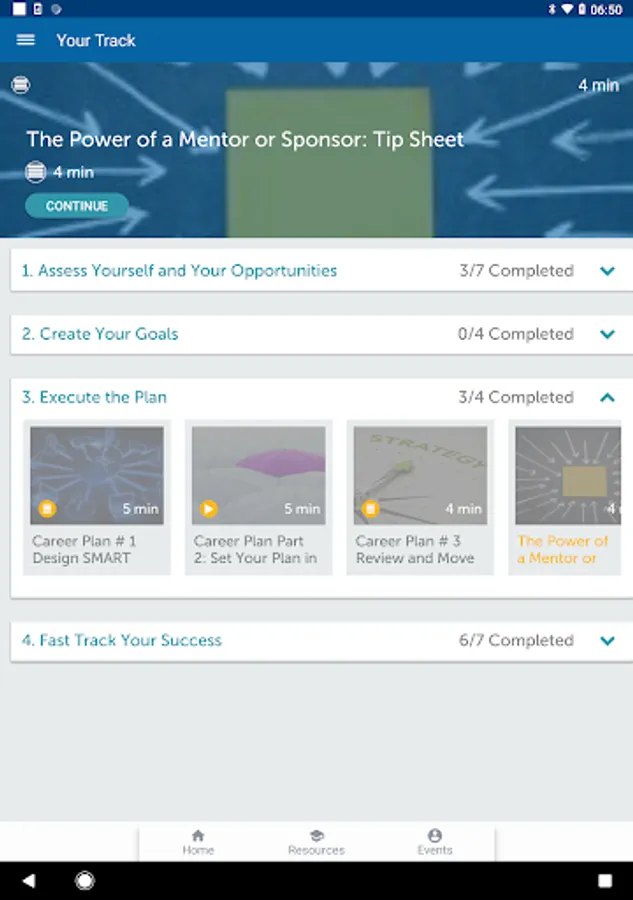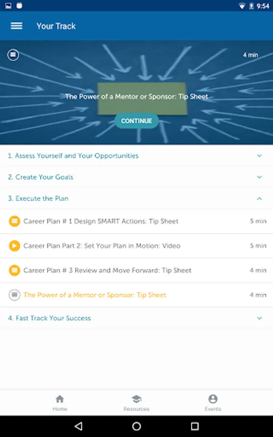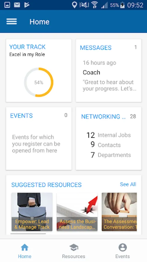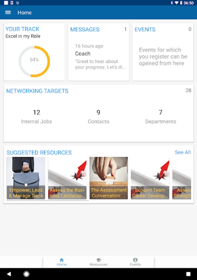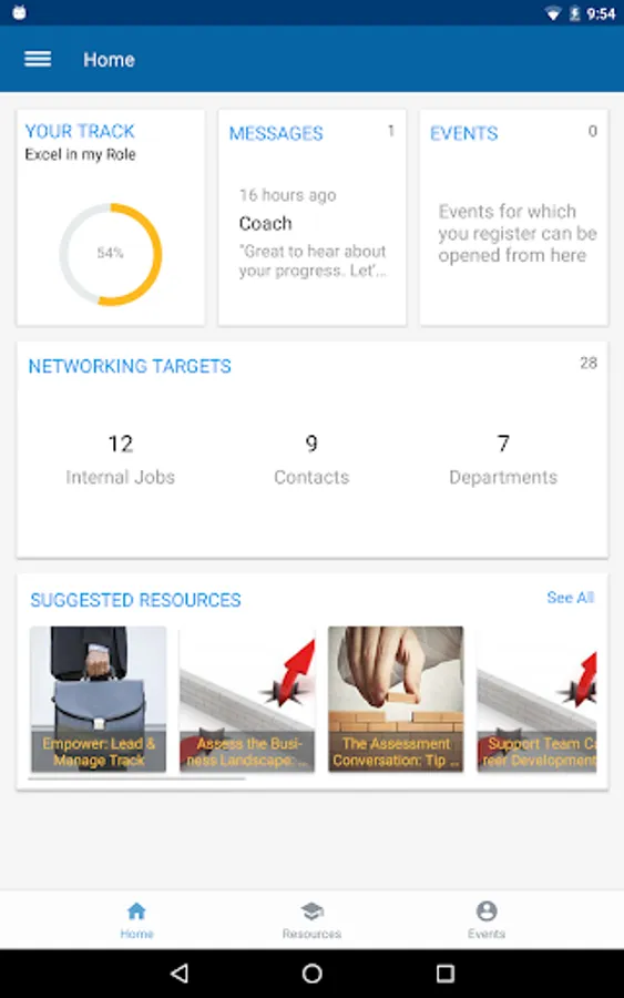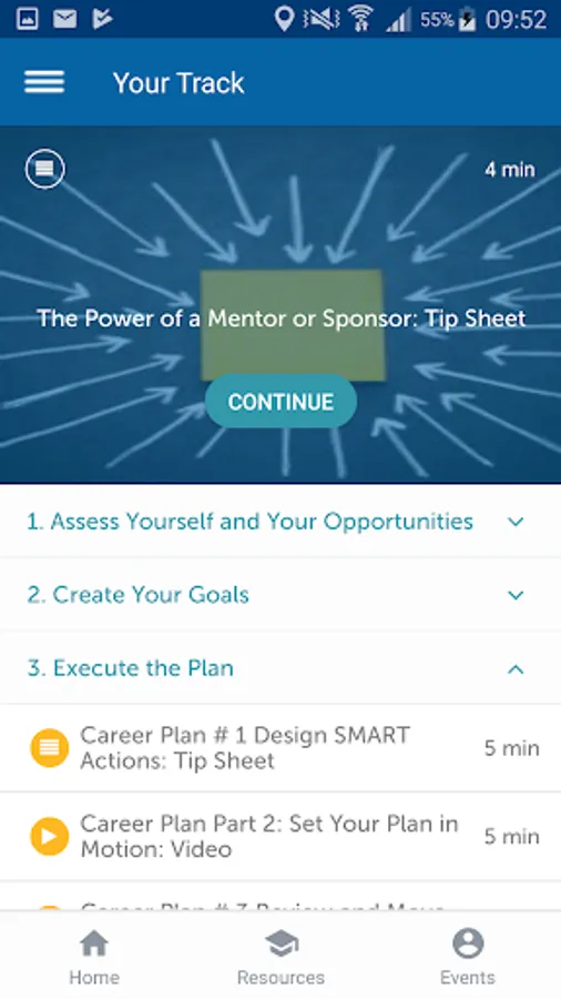 Log in to access your career track with step-by-step activities to reach your goals. You will be able to develop a career plan, establish your brand, save opportunities, capitalize on career development content, register for events, discover new contacts, schedule coach meetings, and message your coach.