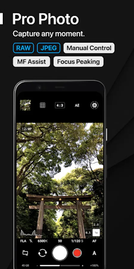 ProShot unleashes the full power of the camera2 API to offer a range of manual, semi-manual and automatic controls, just like a DSLR. Take full advantage in Manual mode, keep ISO in check in Program mode, or leave it all on Auto and simply enjoy the moment.